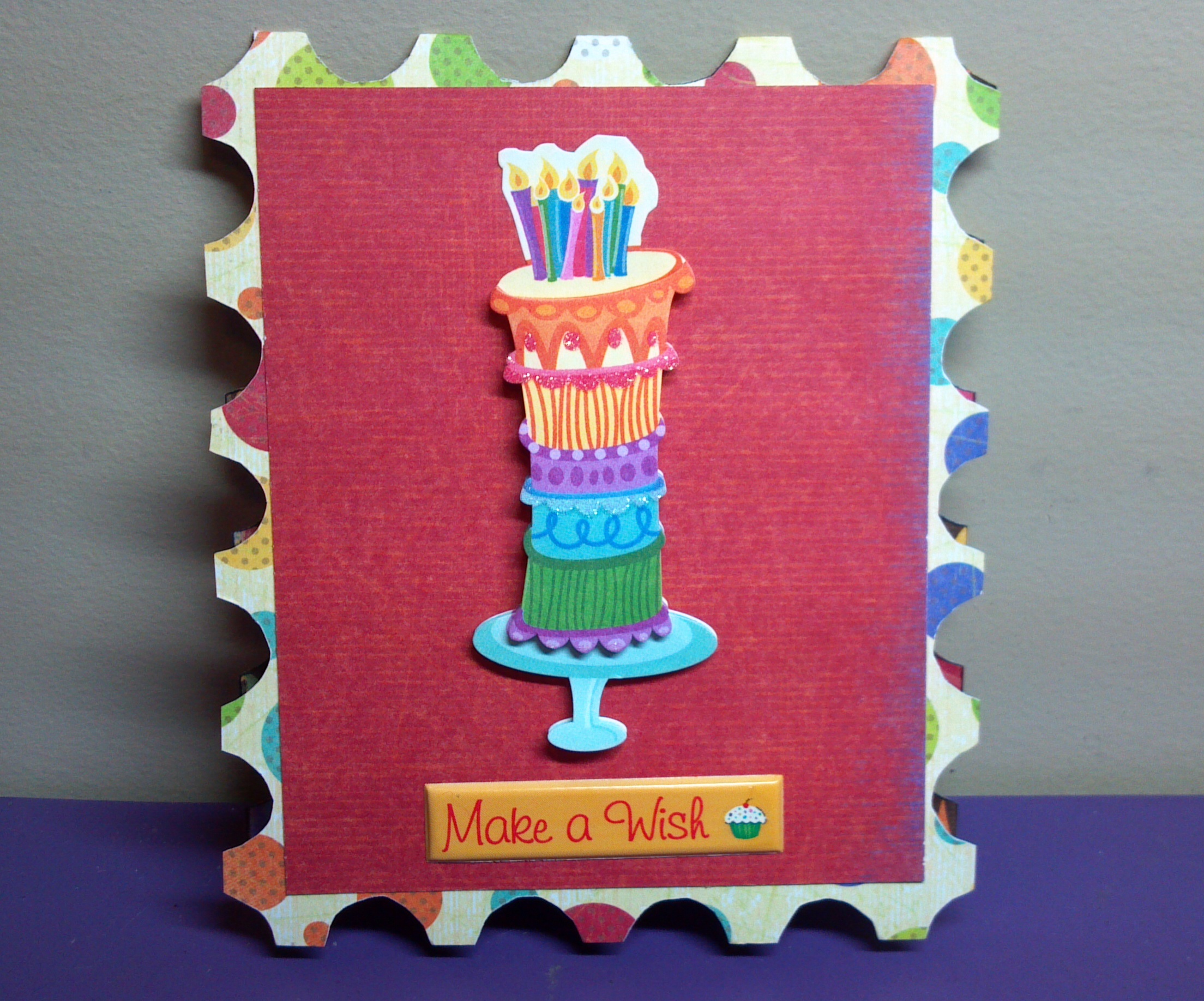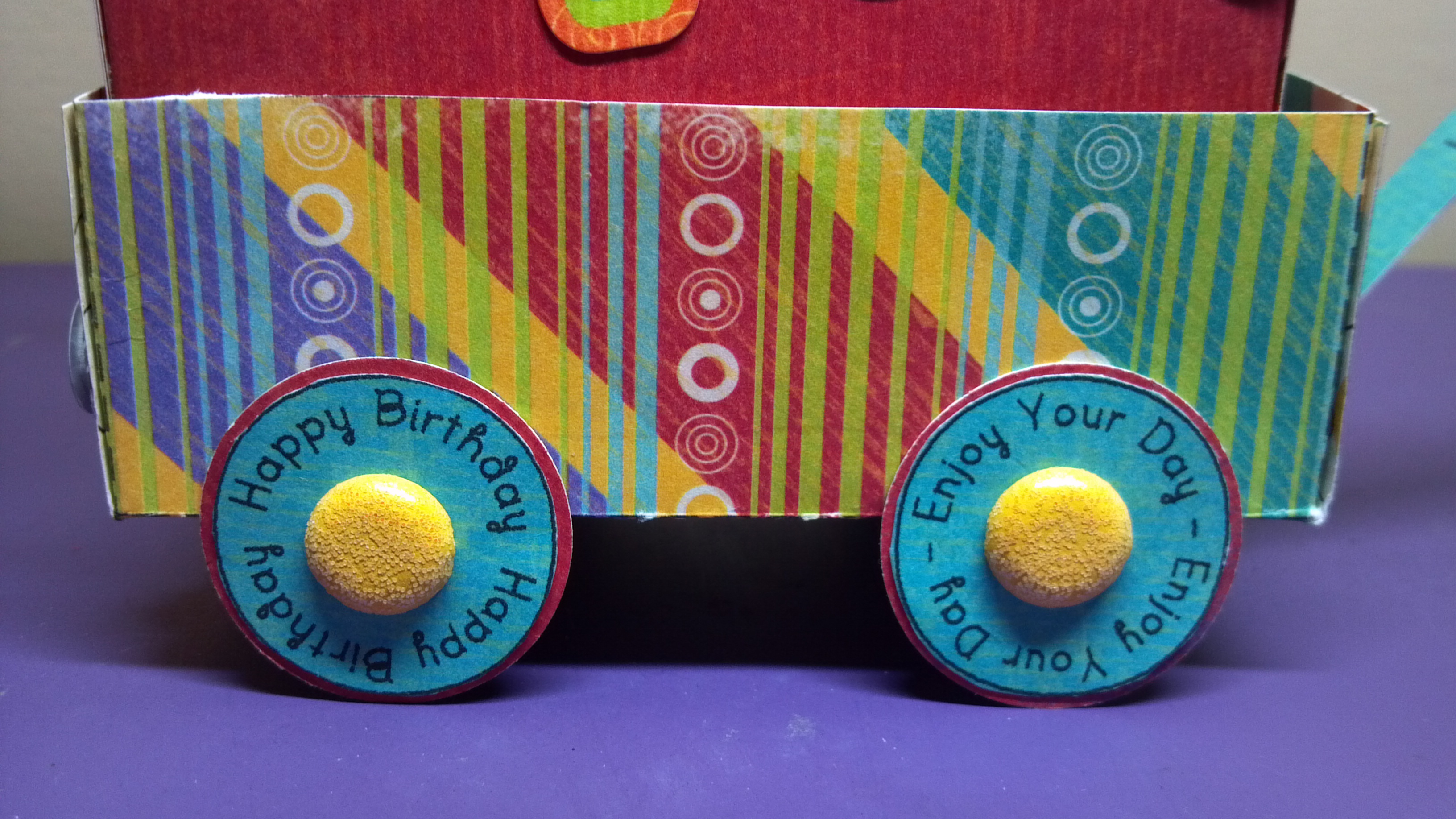 I made the wagon and the boxes that come with the file using the K & Company Confetti line. I just love the way it turned out! I also made a card and a base for the wagon using the Postage Stamp Shaped Card Template. Originally I did not have a base on it, but decided to add it so some of the following photos will be of the wagon before adding it.