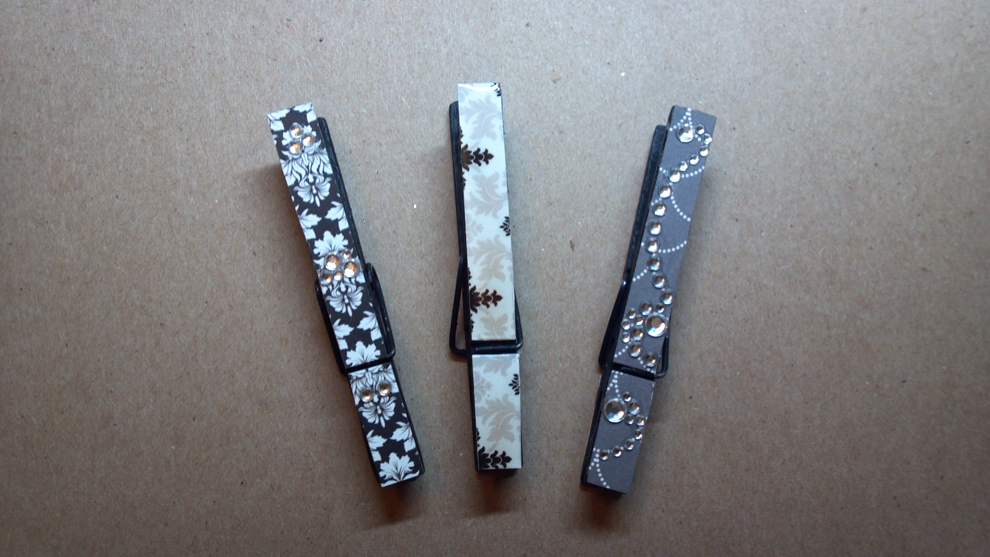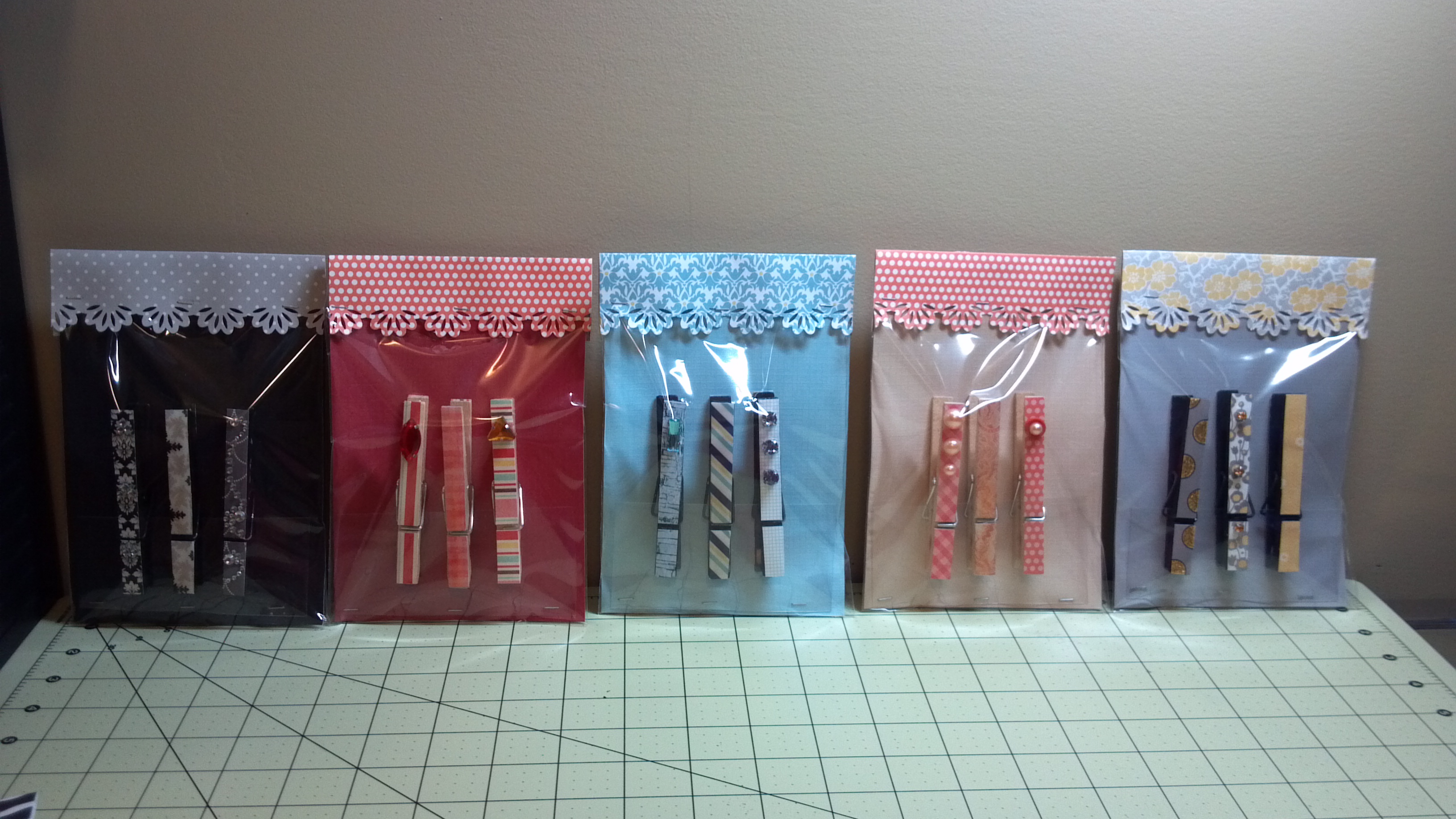 I participated in another swap hosted by Scrapdaworld on YouTube. This time it was an embellishment swap with altered bottle caps and clothes pins! For the bottle caps, we had to make at least one with dangles and it had to also be finished on the back side. At least one of the clothes pins needed to have a charm/bling on it.