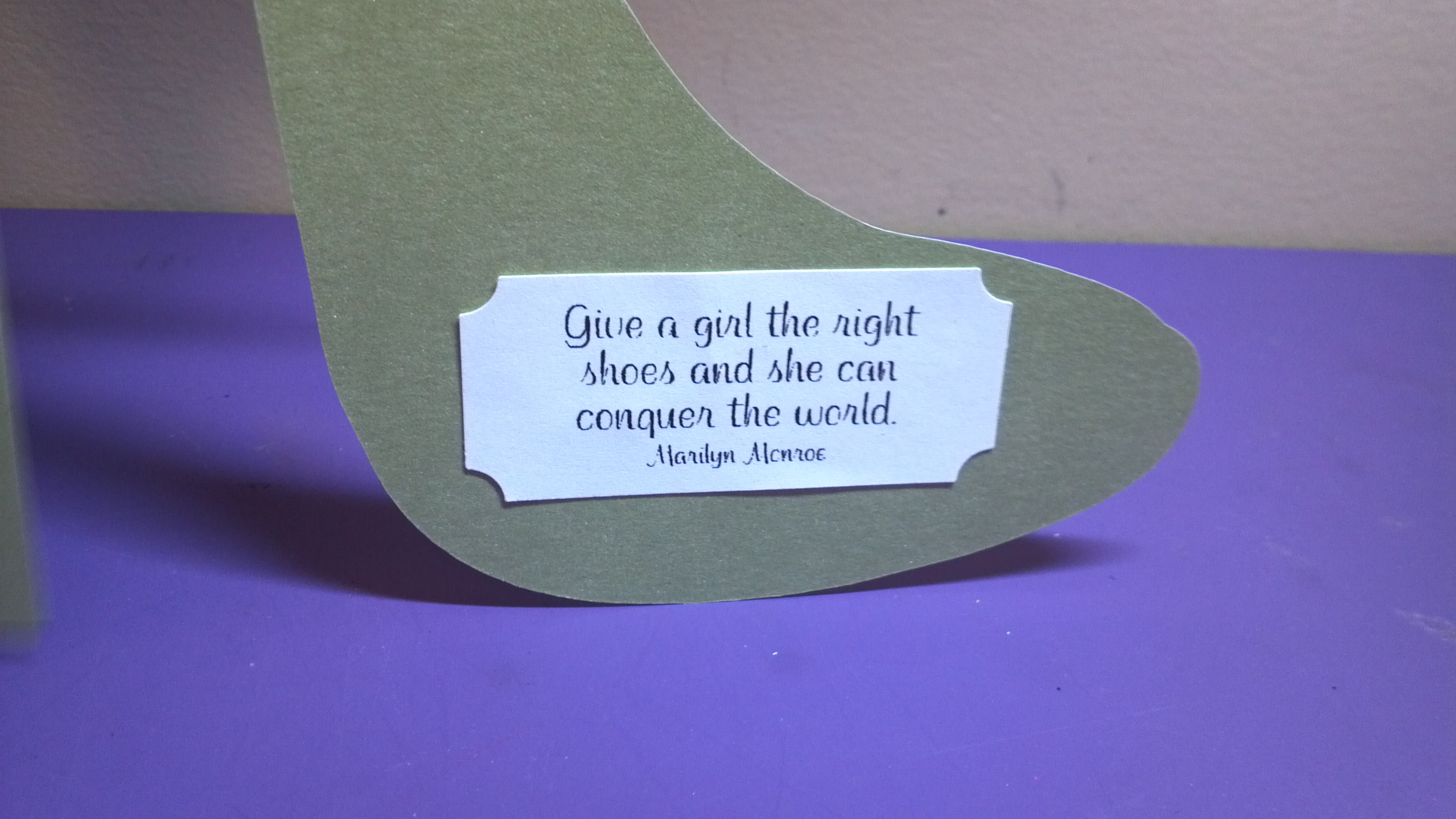 I used a black shimmer cardstock with lime green and silver polka dot glitter paper, and a light green for the base and insole. I used some sunburst punches on the heel to give it a peek-a-boo effect and show some of the glitter paper. I used a glitter flower and a ribbon slider and mint green half back pearl to finish the bows. I absolutely love this card and will be making more of them very soon! Here are a few more pics…