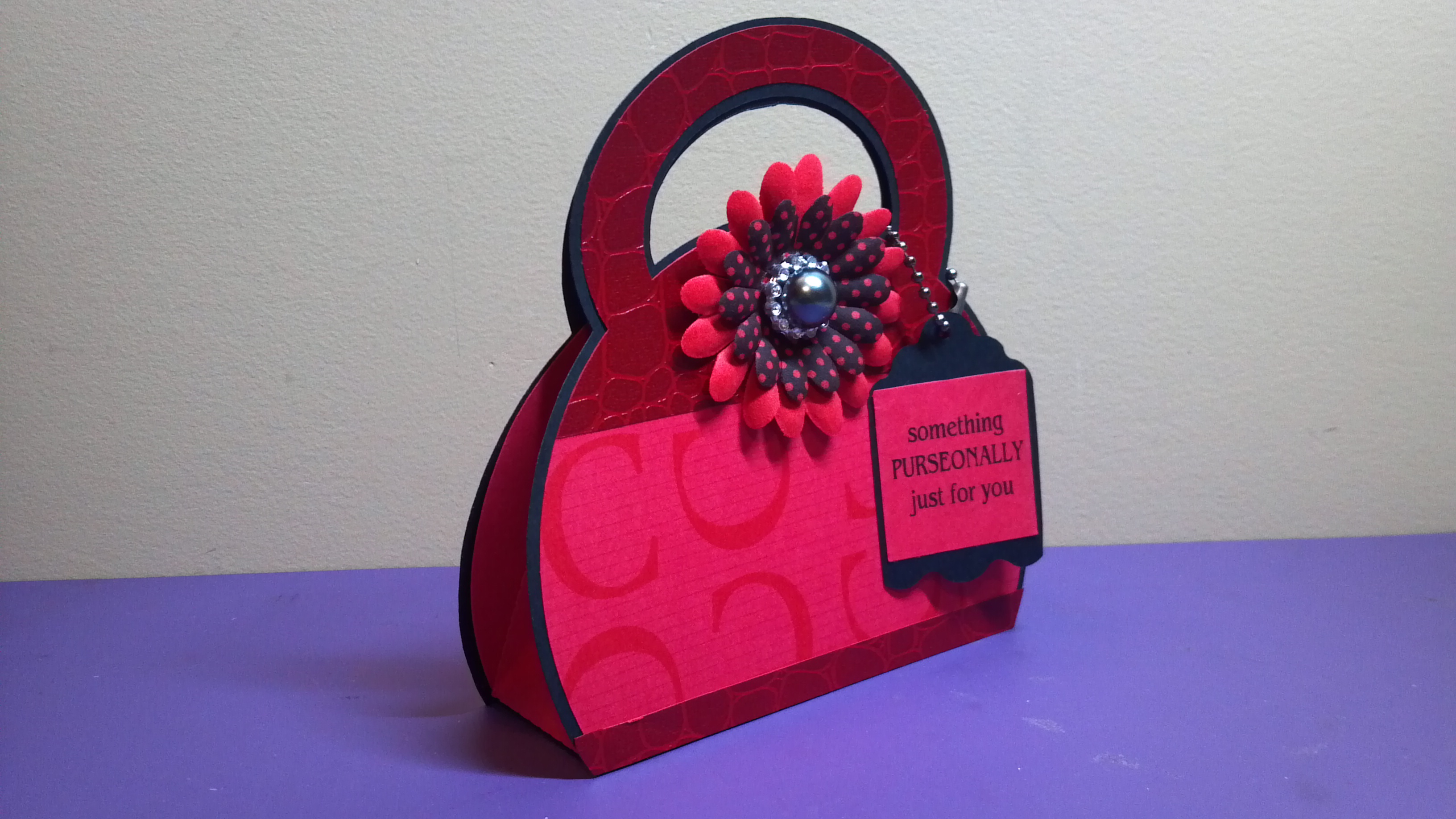 I used the Assorted Purse Box Template which is a versatile file featuring so many options. There are five purse styles with multiple options such as background paper, different handles, tags and sentiments, and more!