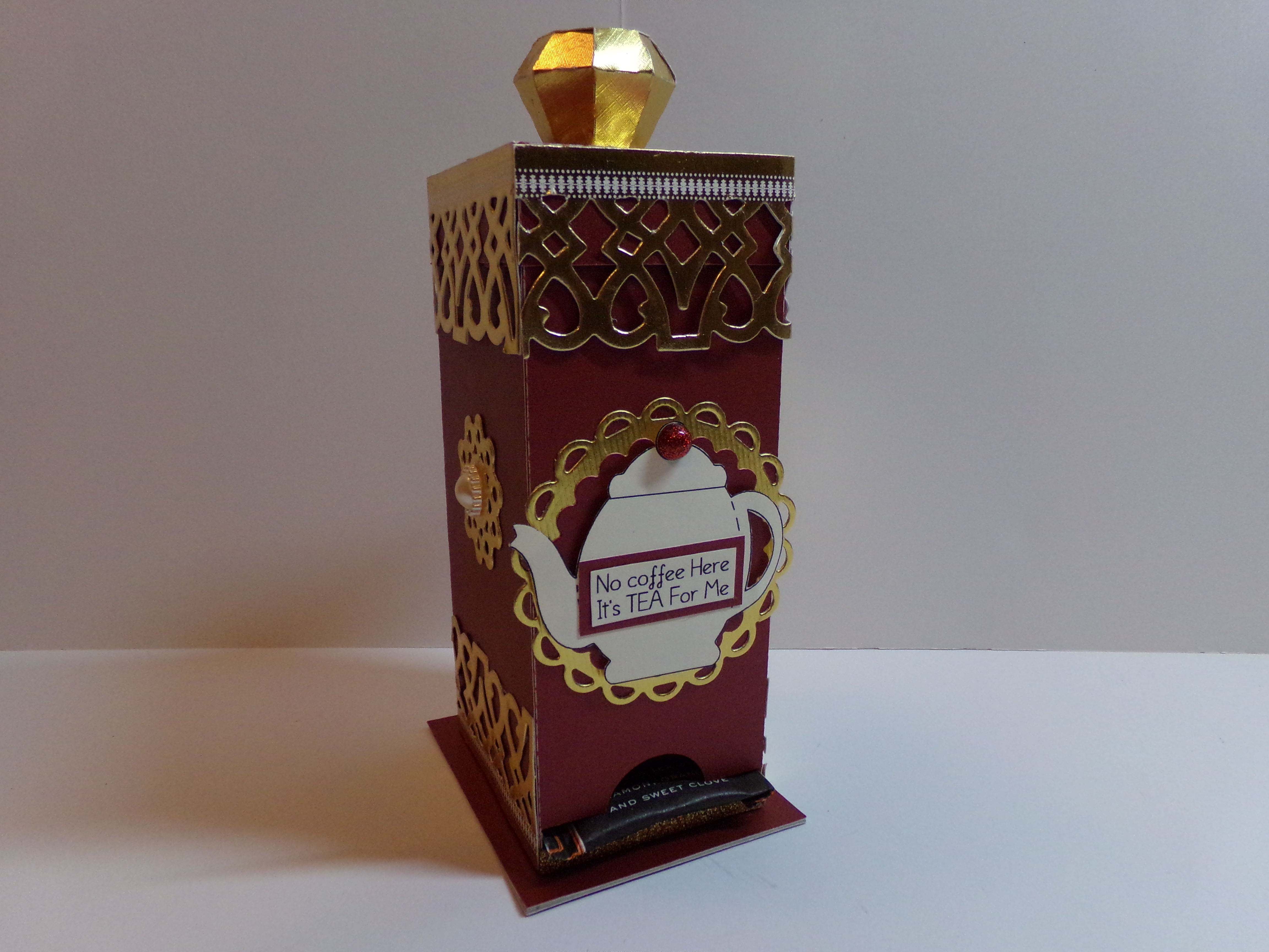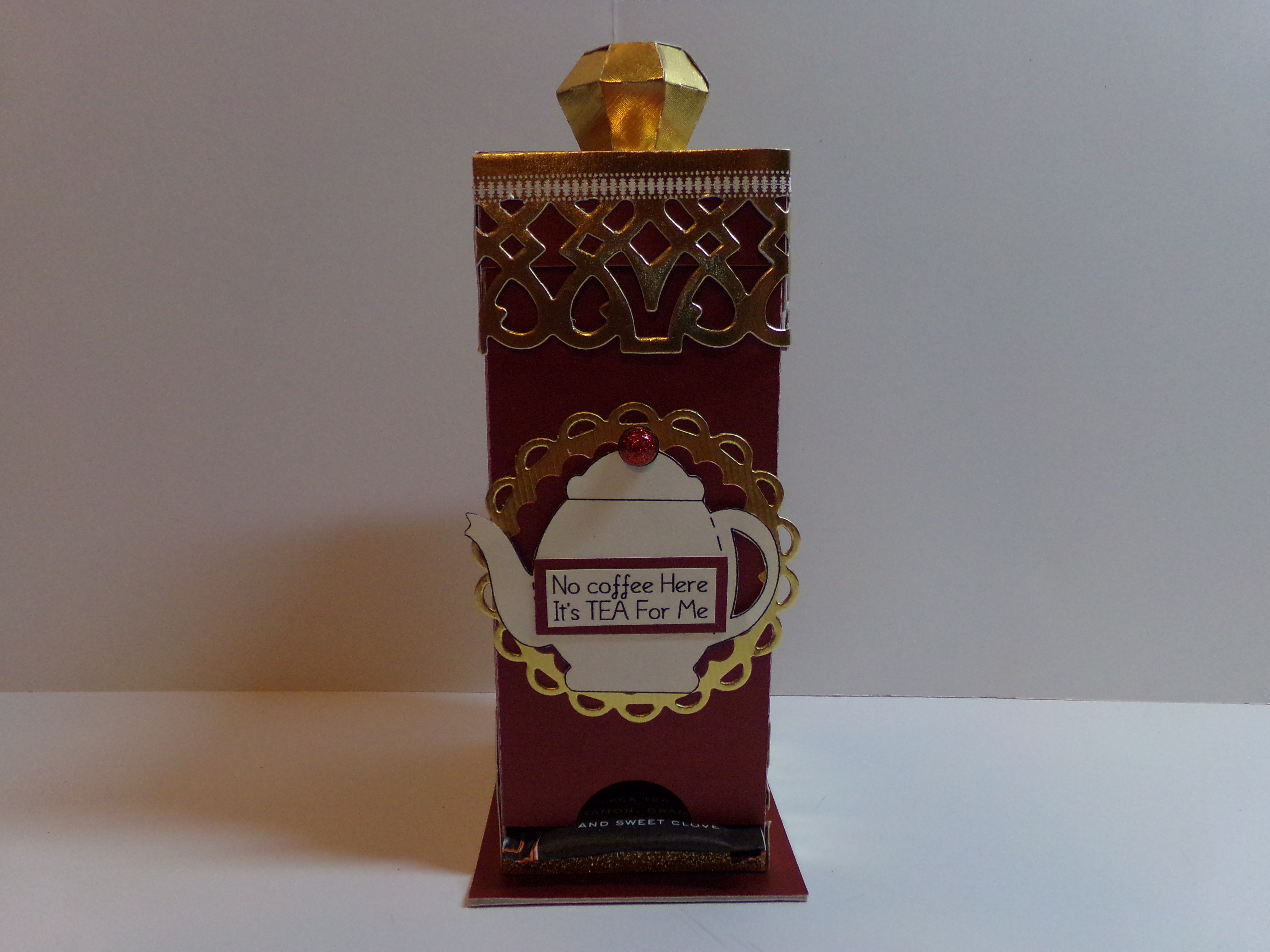 Happy New Year to you! I hope your holiday season was fabulous! I was a busy beaver and thus did not have a lot of time for crafting. But, it is a new year and I am back at it. Thanks for stopping by! Today I am sharing my first design team project of the year for The Cutting Cafe. This time we could choose any file we wanted to work with. Regina recently created a Tea Box Holder Set and the minute I saw it I knew I had to make it! I hate coffee and I like tea. So, I made this to sit on my desk at work…