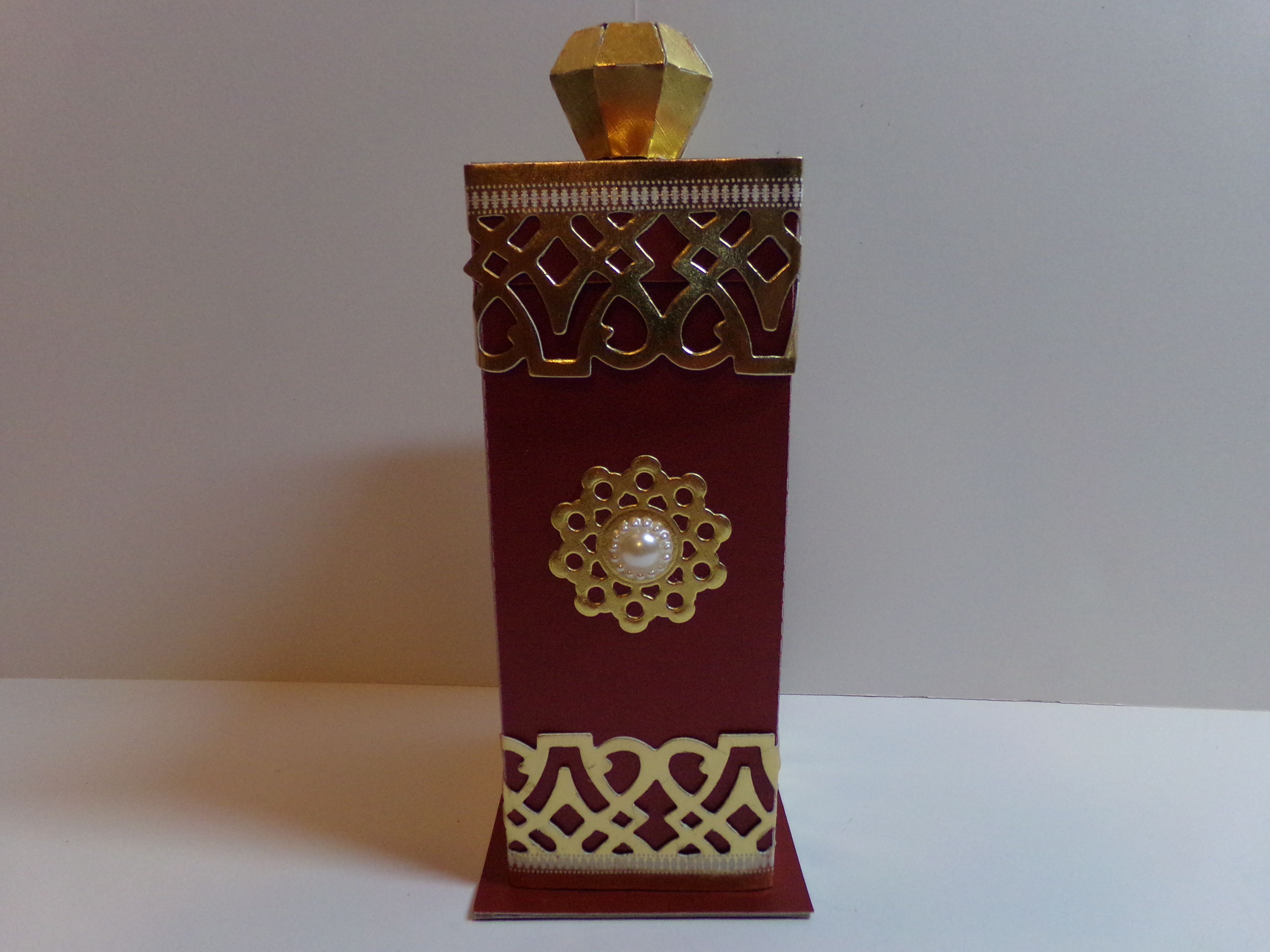 I absolutely love the way it turned out. I wanted something with an elegant feel and I think the gold foiling accents and the shimmer paper does just the trick! The file comes with a lid that comes off so you can put your tea bags in the box. I added a diamond shape knob to the top of the lid. The knob does not come with this file however. It is from another file I own. I also added the gold die cut border to the edge of the lid for more drama. Here are views without the tea bag and a front on view…
